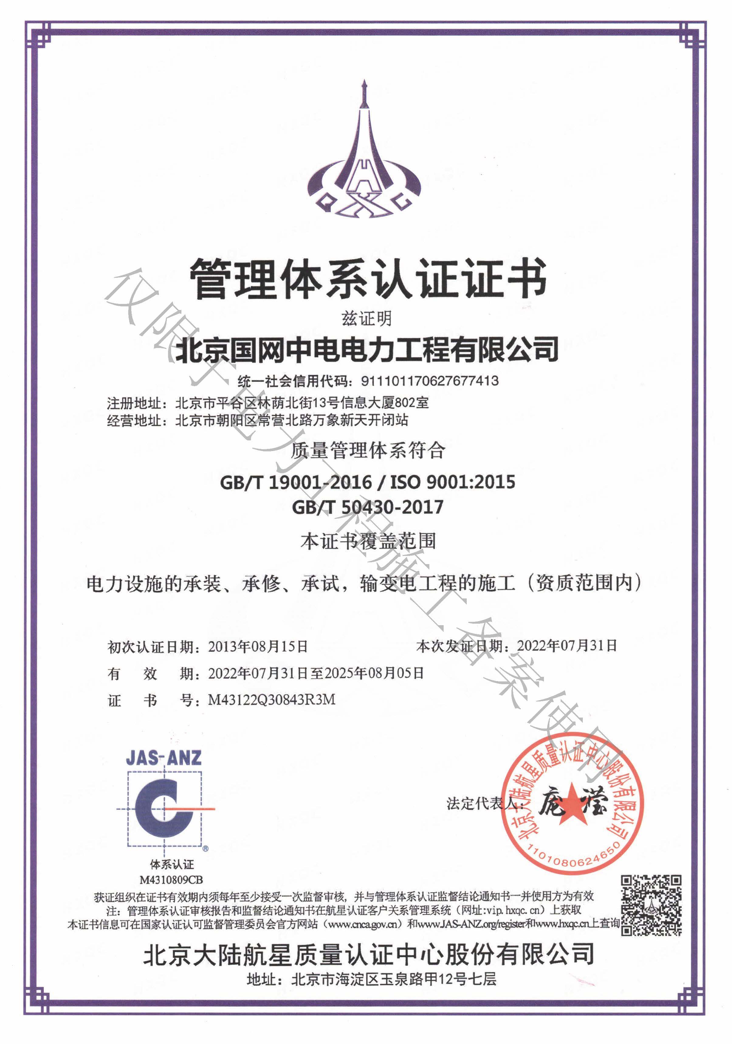 北京國網中電電力工程有限公司 地址:北京市朝陽區(qū)常營北路萬象新天開閉站